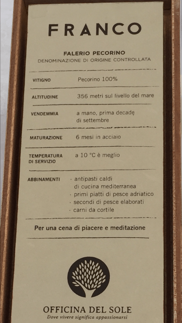 IMG_1232 Previous Next Published May 28, 2017 at 361 × 640 in Infuse the Grapes and make Wine The side bar…. Still Pecorino 100% the information did not change much. So i decided to taste it and give it my own critique. The 100% Pecorino (unlike the cheese) was much milder than the SENSI